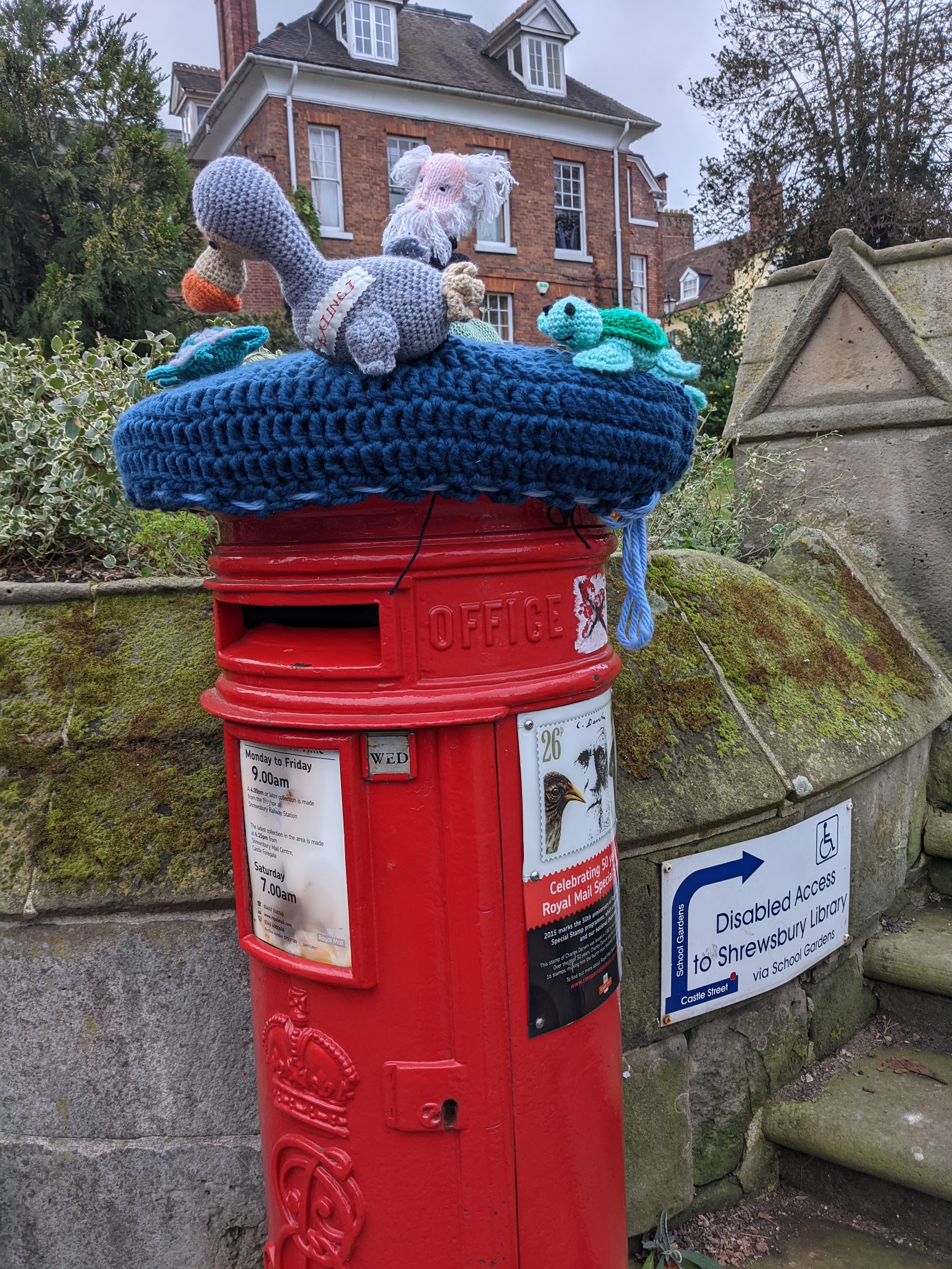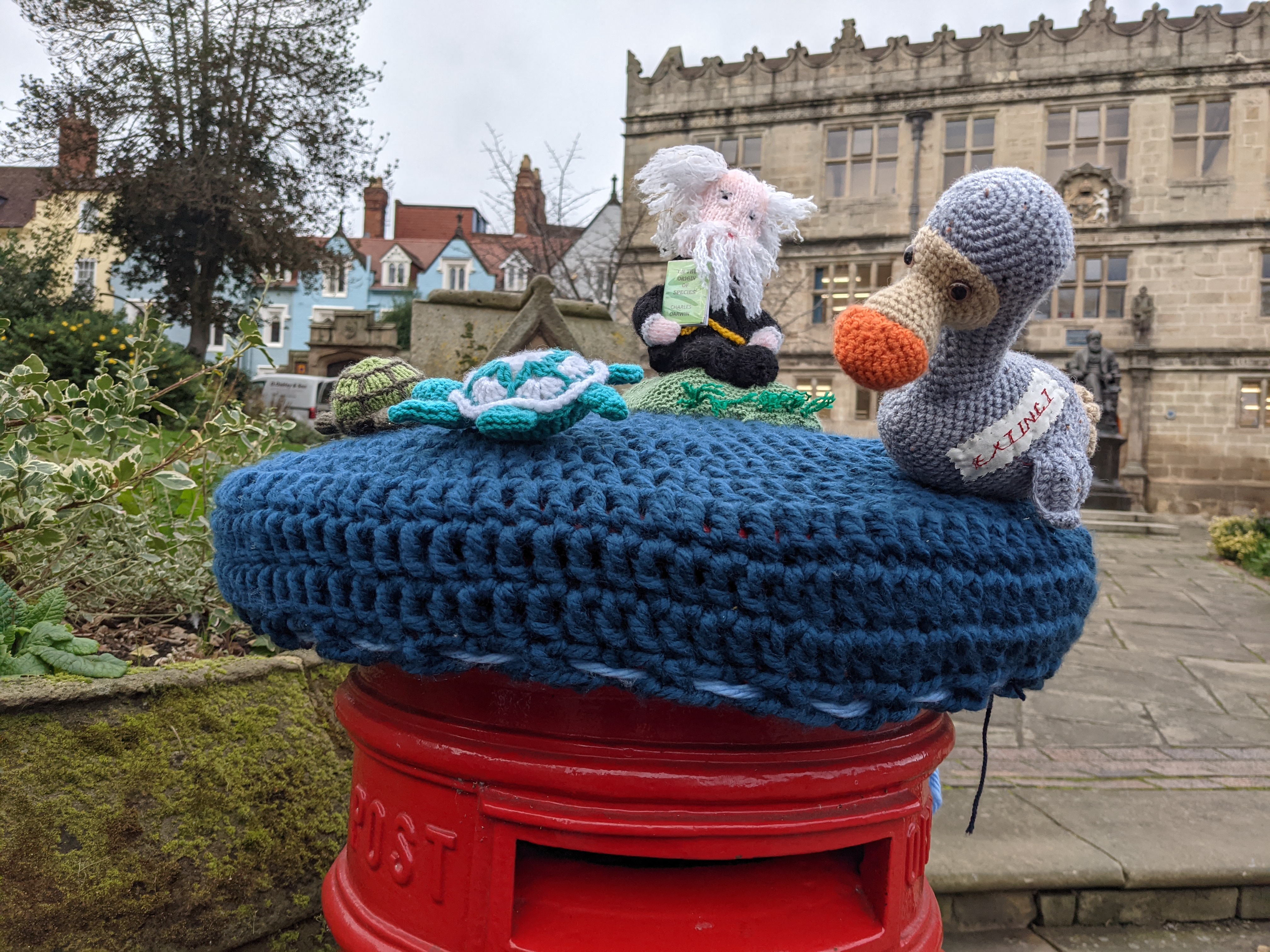 Love this tableau of knitted figure in #Shrewsbury – left me wondering;