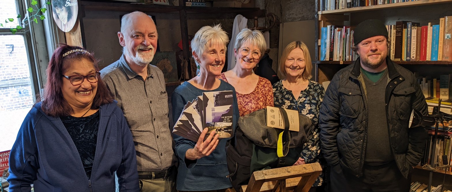 So honoured to read at the Poetry Pharmacy for the launch of Jean Atkin’s collection The Bicycles of Ice and Salt, published by Indigo Dreams, with (l to r) Wolverhampton Poet Laureate Kuli Kohli, Steve Griffiths, Jean, Margaret Adkins and Gareth Culshaw.
